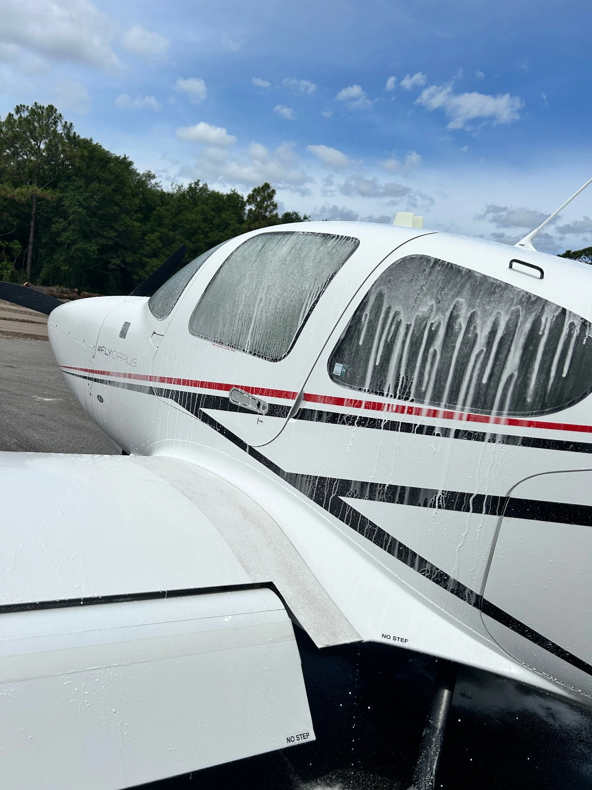 A exterior washing removing bugs, grime, and cleaning contaminated areas of paint. Ultimately leaving a beautiful shine on your aircraft.